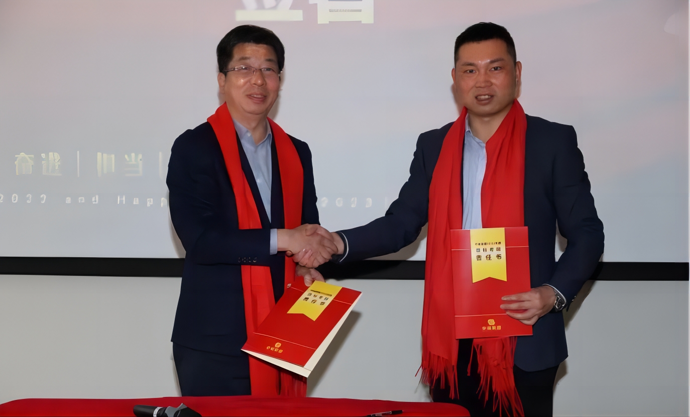 王斌董事長和陳拓總經(jīng)理現(xiàn)場簽署《2023年目標(biāo)考核責(zé)任書》
