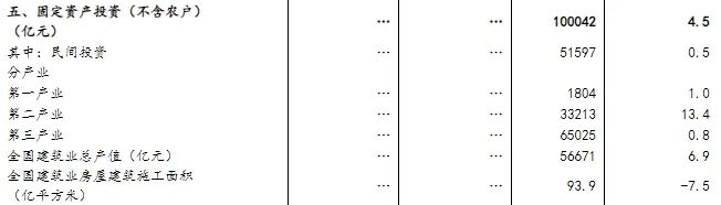分產(chǎn)業(yè)看,第一產(chǎn)業(yè)投資1804億元,同比增長1.0%;第二產(chǎn)業(yè)投資33213億元,增長13.4%;第三產(chǎn)業(yè)投資65025億元,增長0.8%。