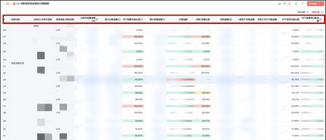→ 跨項目結(jié)算整合:自動計算供應(yīng)商服務(wù)多個項目的整體付款比例,支持“總量控制+分項目排期”,對下付款有依據(jù),更合理;