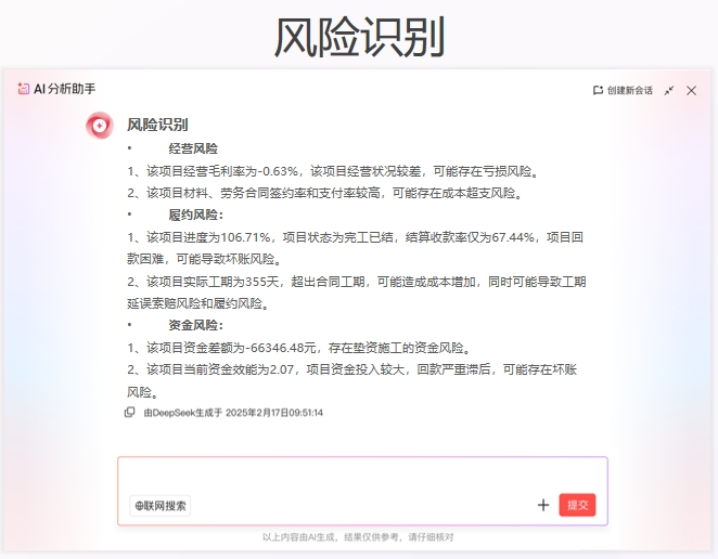 → AI風(fēng)險預(yù)警:智能預(yù)警現(xiàn)金流缺口,提前籌措防斷裂(例:精準定位需籌款項目)